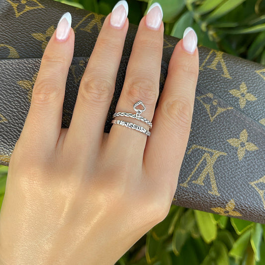 Christian Ring Set of Sacred Heart of Jesus Dangle Charm Ring and In the Name of Jesus Catholic Band Ring