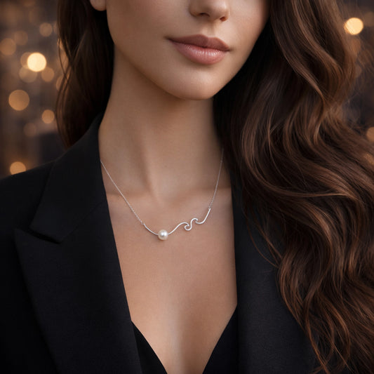 Wave and Pearl Dainty Sea Necklace