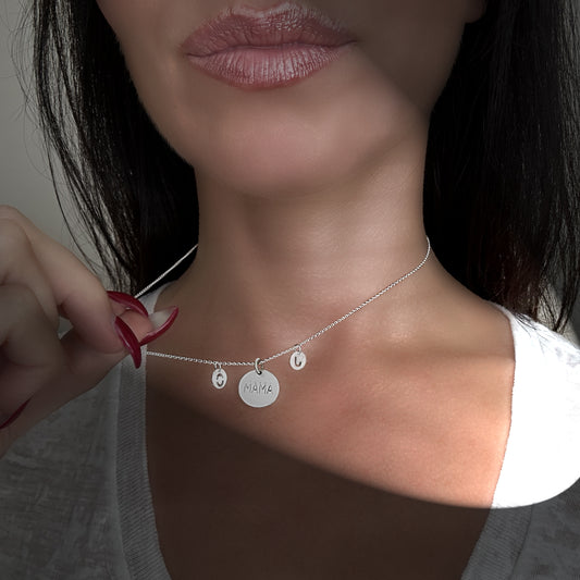 Regular price From $25.00 USDRegular priceUnit price / per$50.00 USDSale price From $25.00 USDMama Word Engraved Round Charm Necklace with Personalized Initial Charm