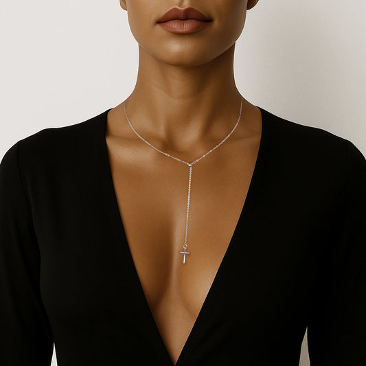 Holy Cross Lariat Necklace in Premium Sterling Silver