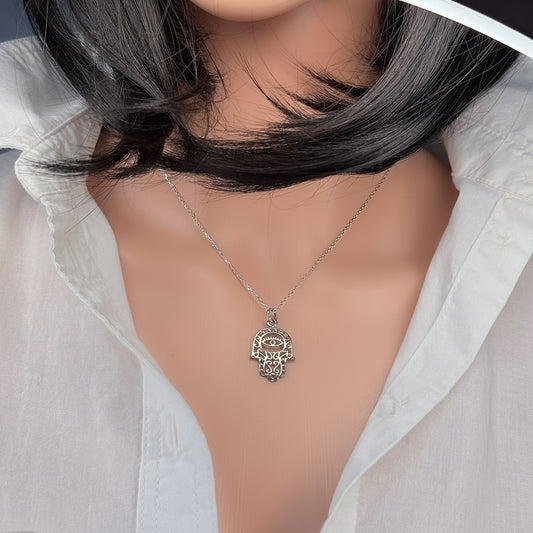 Regular price $28.00 USDRegular priceUnit price / per$56.00 USDSale price $28.00 USDLace Hamsa Hand Necklace with Evil Eye