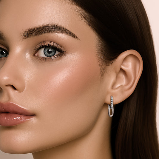 Pendientes colgantes convertibles de doble eslabón con circonita cúbica