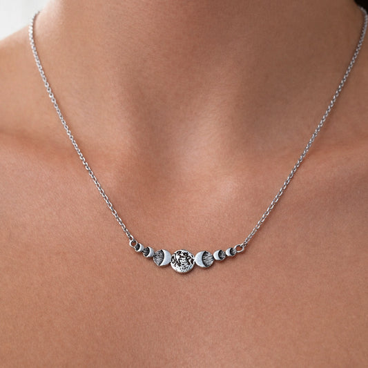 Collar de fases lunares en plata de ley