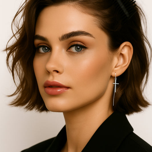 BEST SELLER 50% OFFPendientes de cruz largos atemporales en plata de ley de primera calidad