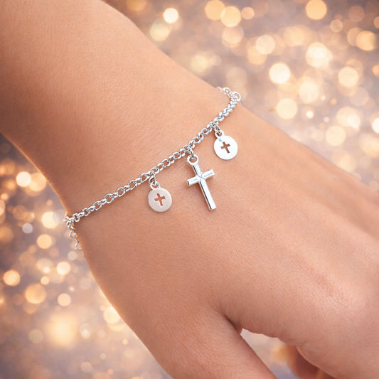 Sterling Silver Faith Bracelet with Purity Dangle Cross Charms