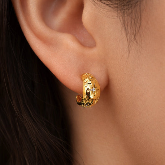 Pendientes abullonados rellenos de oro y luna creciente