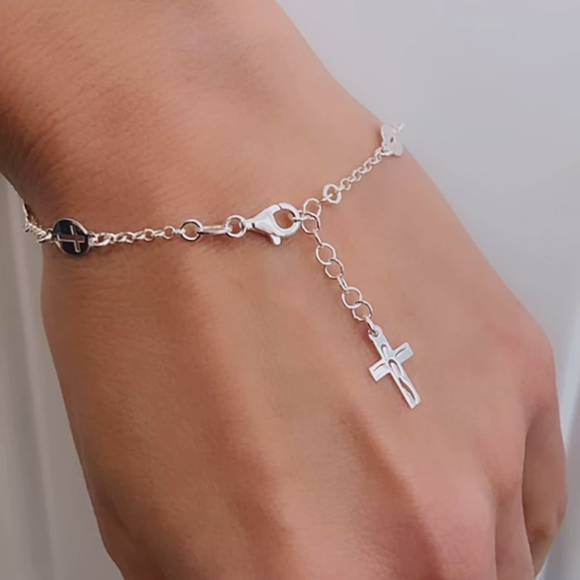This religious bracelet is a delicate and meaningful accessory. Featuring a sleek chain adorned with a small cross charm, it blends faith and style in a timeless design. Perfect for daily wear or special occasions, this bracelet adds an elegant touch while reflecting your spiritual side.