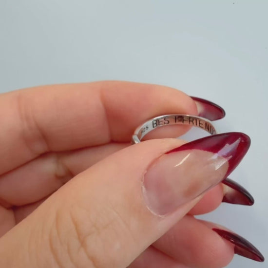 ♾️ Eleve su amistad con nuestro anillo infinito de plata esterlina de alta calidad con grabado "Mejores amigos" y un pequeño corazón seguido después.