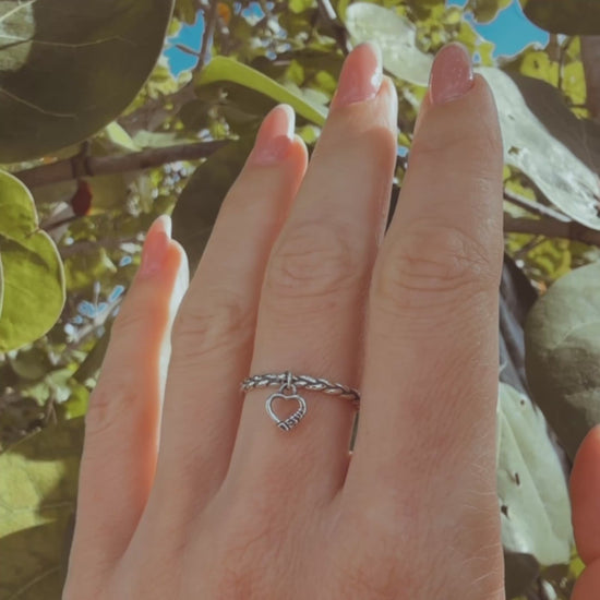 ✞This Sacred Heart of Jesus dangle charm ring beautifully combines faith and artistry. The centerpiece features a detailed Sacred Heart charm with Jesus name engraving that hangs delicately, adding a meaningful touch to the design. The charm is paired with a finely crafted braided band, symbolizing strength and unity. The intricate braiding adds texture and elegance, making this ring a perfect balance of spiritual significance and style. Ideal for those who want to carry their devotion with them.