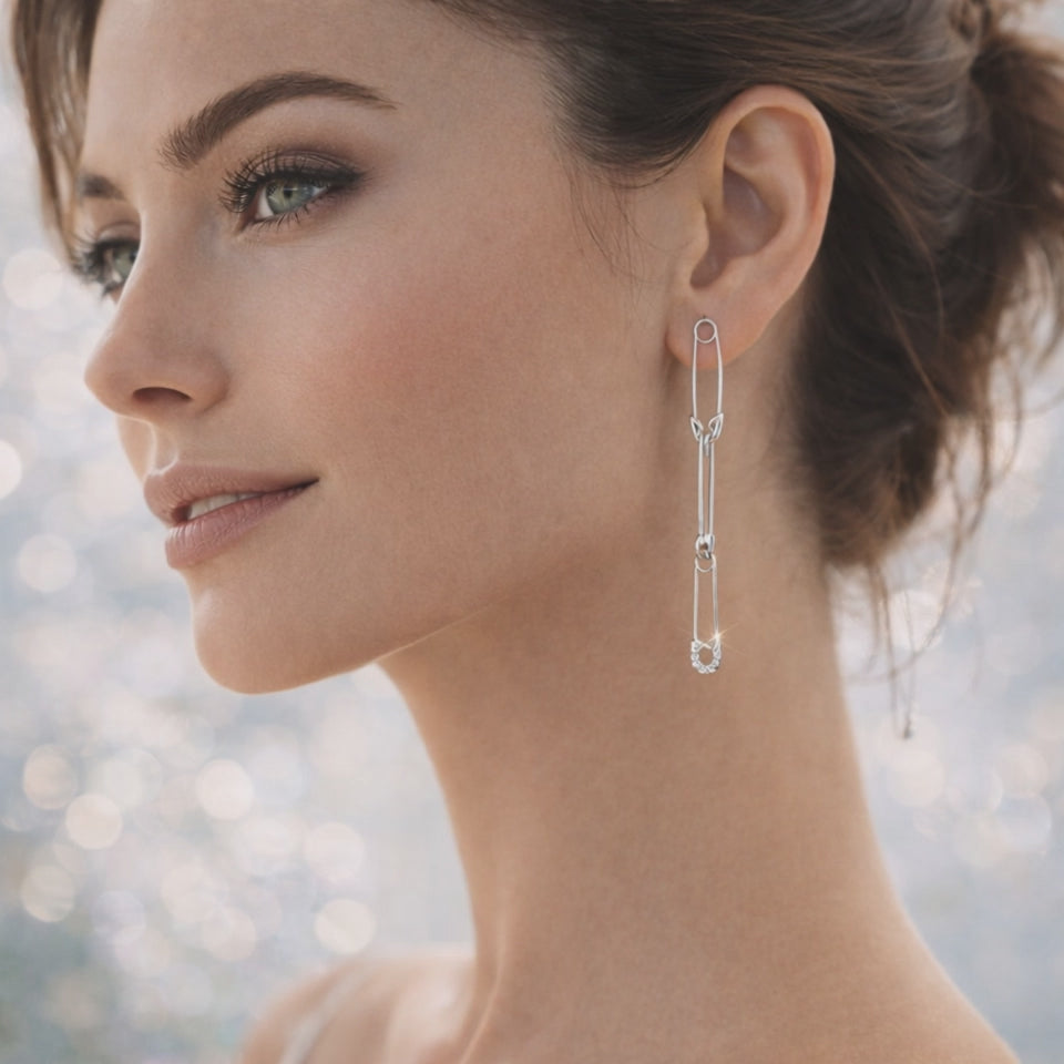 Add a touch of edgy elegance to your look with every women must have accessory - our Safety Pin Earrings. Designed to make a statement, lightweight and comfortable to wear, this protection earrings feature a unique safety pin design that is both stylish and versatile. Crafted from high quality materials, they offer a sleek and modern aesthetic that compliments any outfit. The long drop length creates a dramatic effect, perfect for those who loves bold, contemporary jewelry. Whether you're dressing up for a special occasion or adding some flair to your everyday style, these earrings are the perfect accessory. Additional mission of this trendy accessory is to protect your beauty from the evil eye and bad vibes people. They are the best gift for any girl, women, sister, daughter, friend or mom!