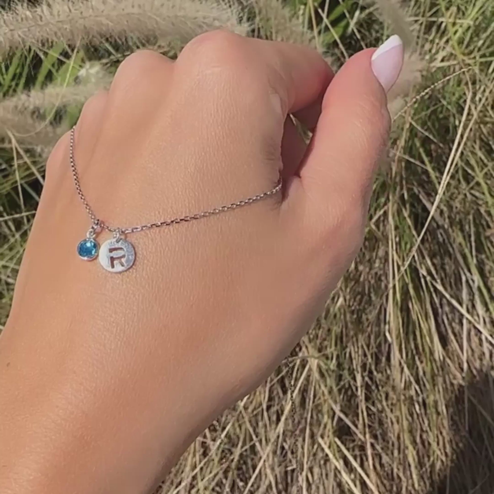 Enhance your elegance with our Solitaire Birthstone Initial Necklace. Personalize it with the birthstone of your choice for good fortune and harmony. Complete your delicate necklace narrative by adding a round disc name charm. This Petite Luck Necklace makes the perfect birthday present.