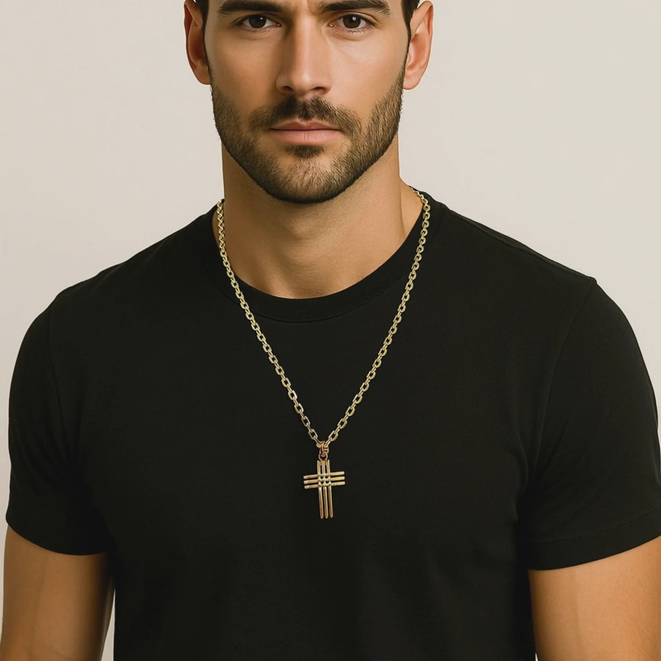 Stacked Bars Intricate Cross Necklace for Men or Women